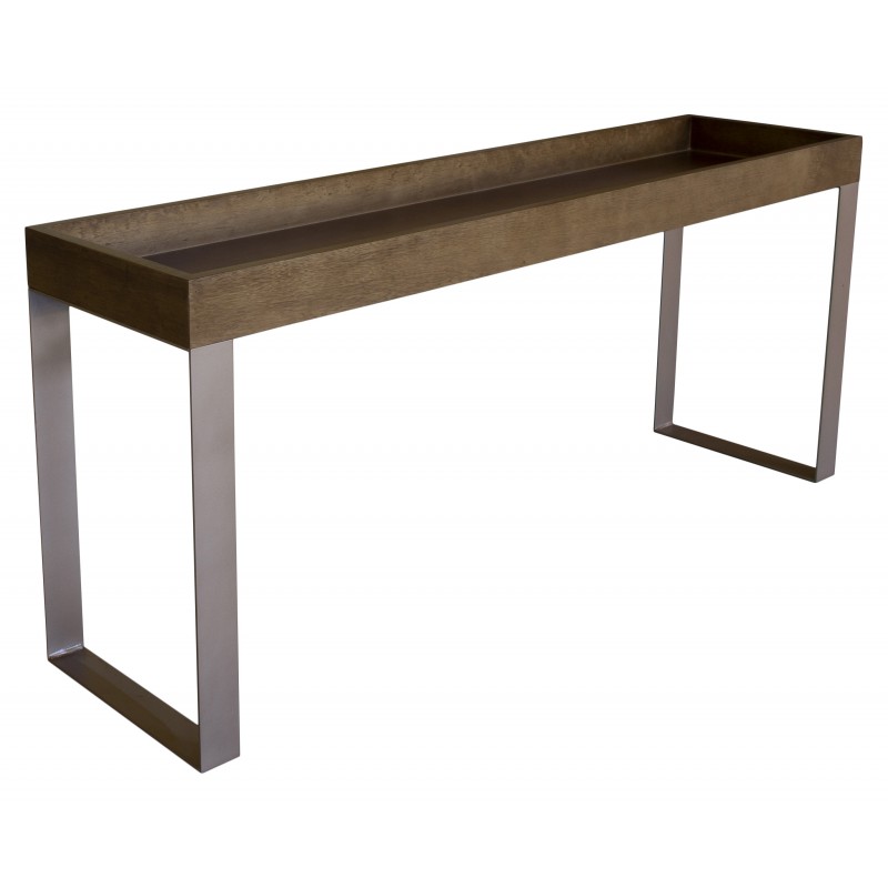 Aparador com tampo em bandeja. Produzido em MDF com lâmina natural de madeira tauari. Ferro pintura eletrostática.