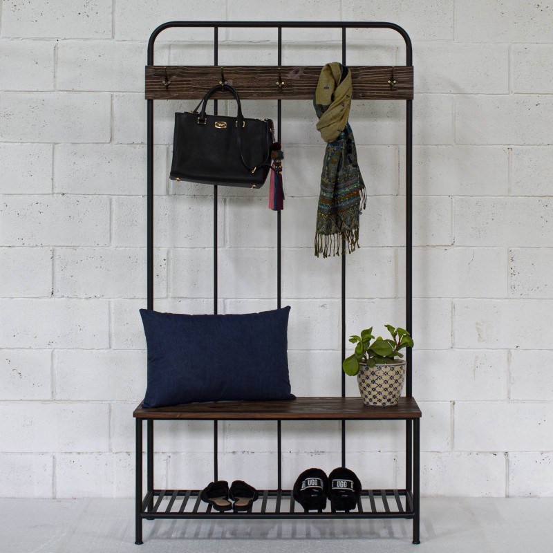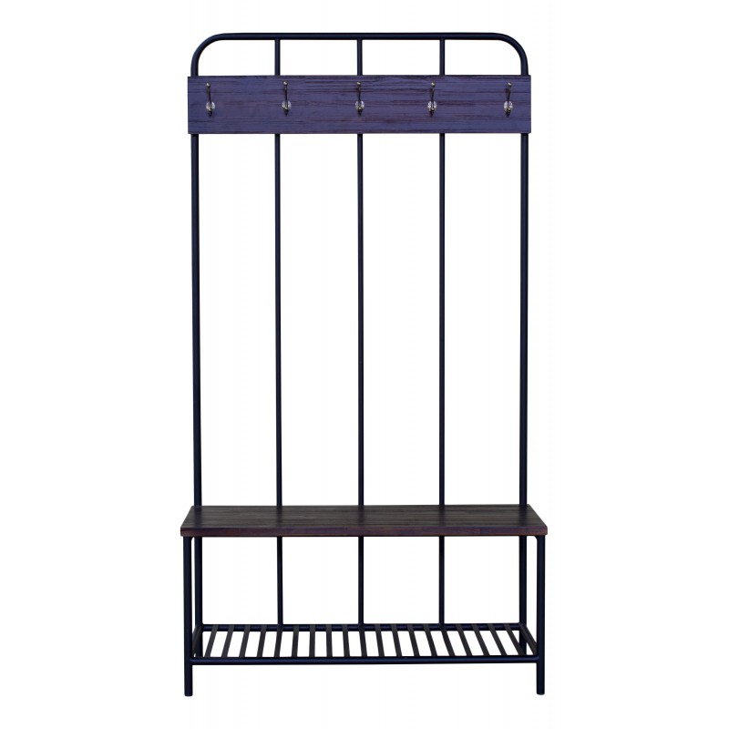 Madeira maciça escovada em Pinus taeda com características rústicas. Ferro pintura eletrostática.