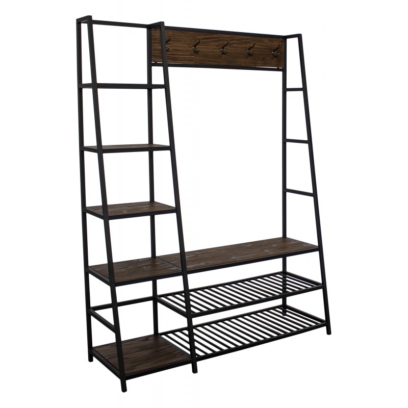 Madeira maciça escovada em Pinus taeda com características rústicas. Ferro pintura eletrostática.
