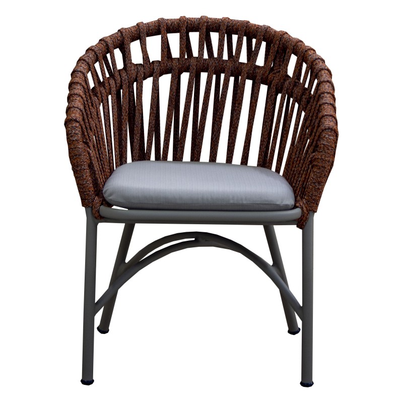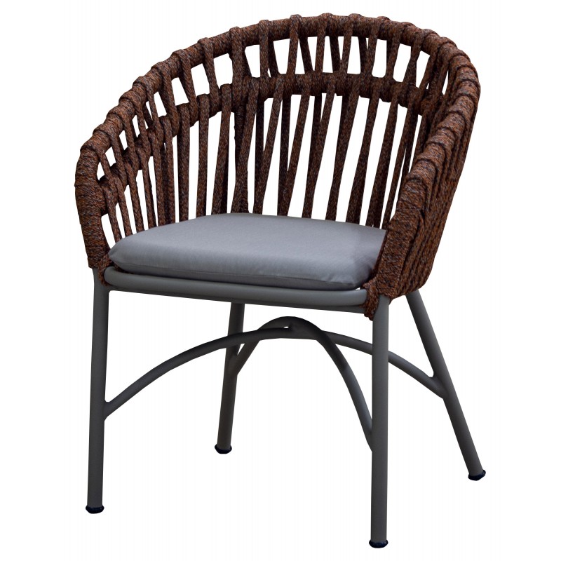 Cadeira em corda e alumínio. Produto para uso em área externa. Assento c/almofada solta.