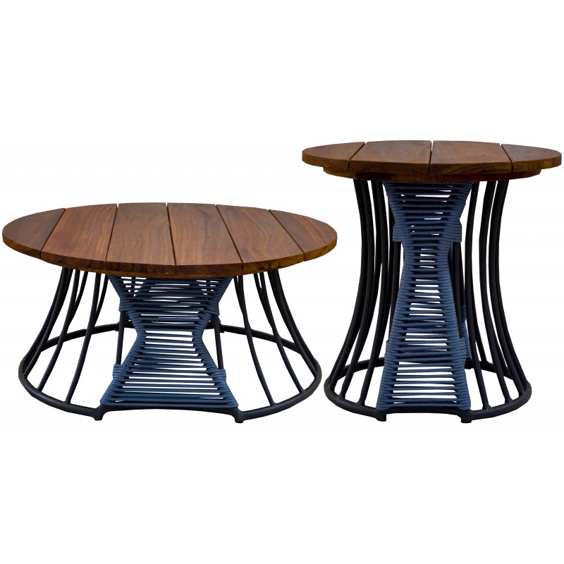 Mesa centro em corda e alumínio. Produto para uso em área externa.
