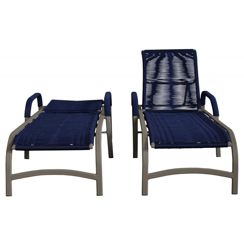 Espreguiçadeira em corda e alumínio. Produto para uso em área externa.