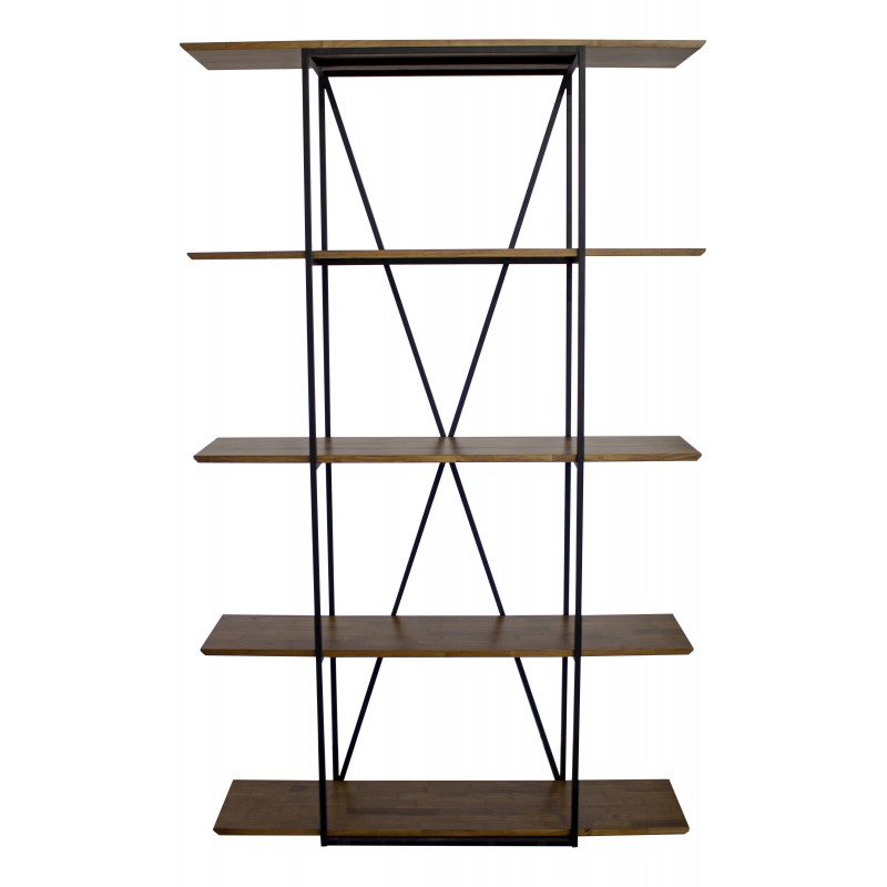 Estante com 5 prateleiras. Madeira maciça de Pinus taeda com características rústicas. Ferro pintura eletrostática.